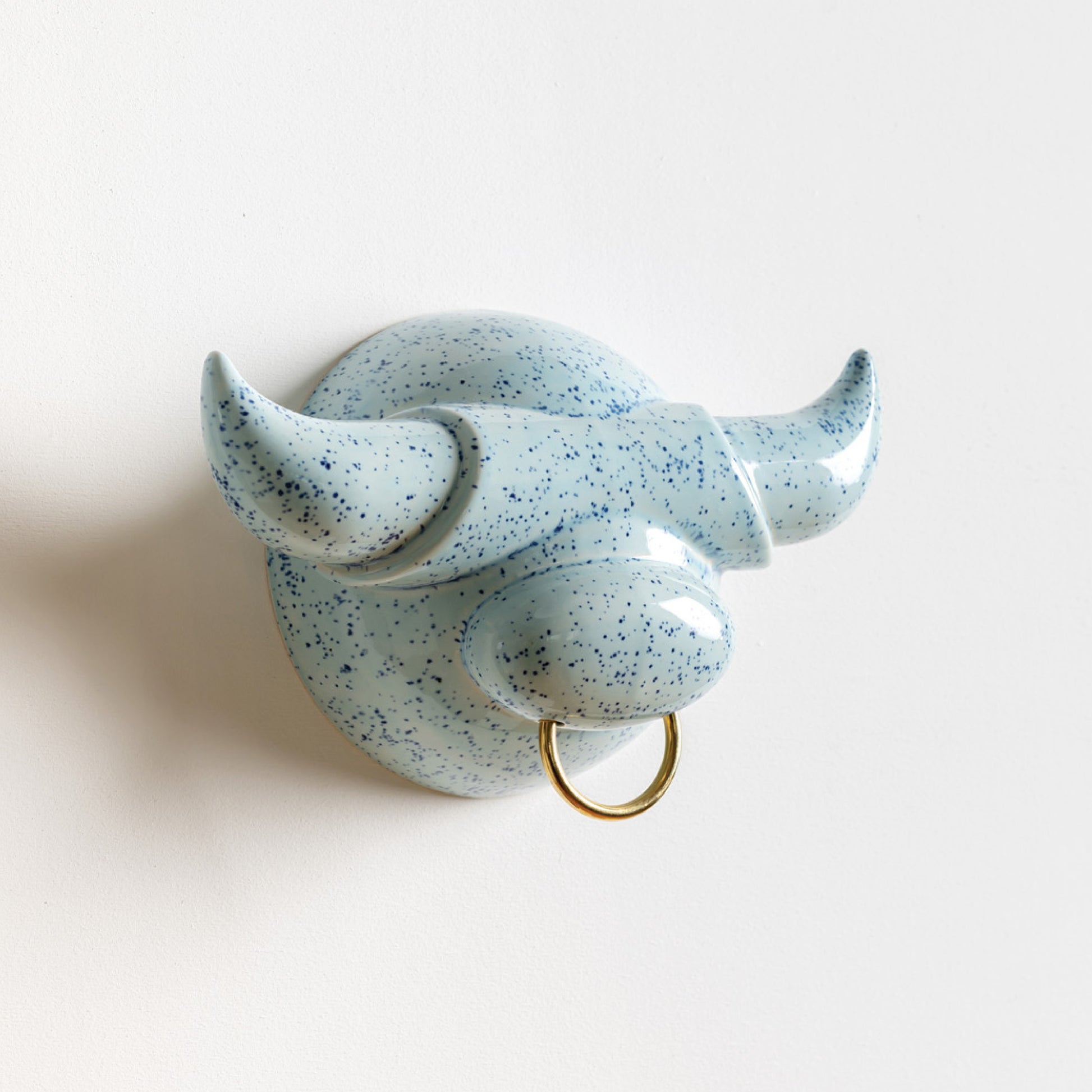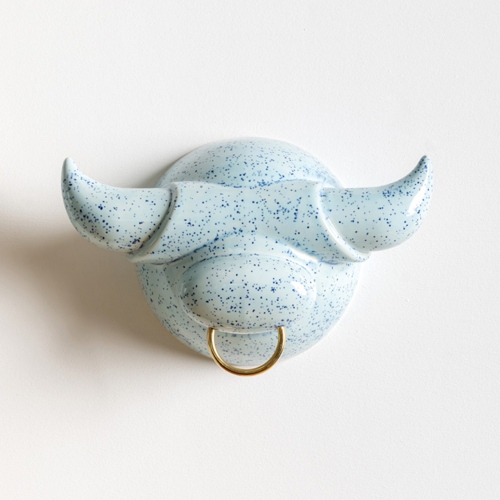 Glazed ceramic wall hook for jewelry and accessories. The horns offer space for hanging necklaces and bracelets. Mounts to the wall with two screws.